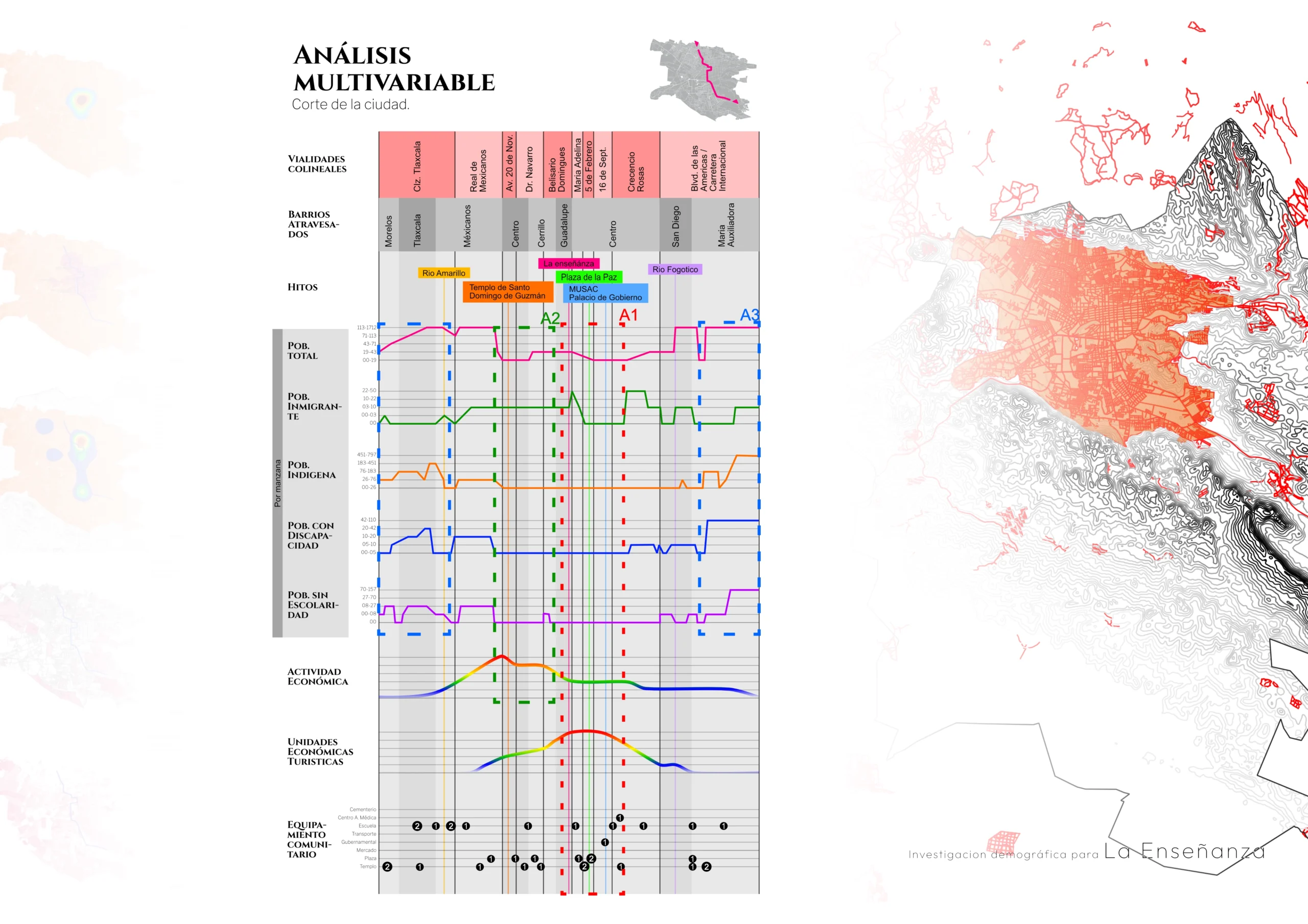 A partir de un análisis etnográfico, geoestadístico y arquitectónico, se proponen espacios de integración comunitaria como el Parque Guapinol y el Taller Ámbar, que buscan responder a las necesidades locales mediante un enfoque sustentable, inclusivo y culturalmente sensible.
